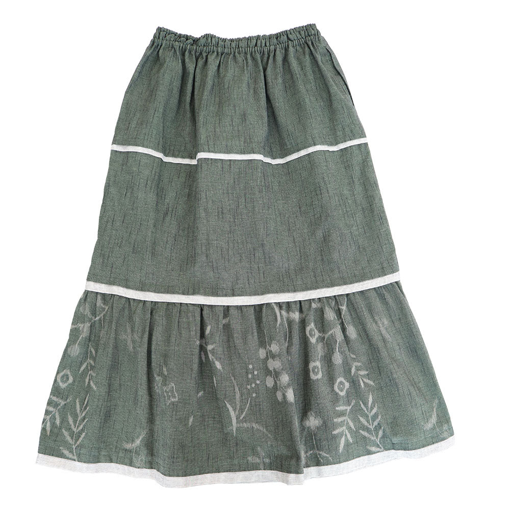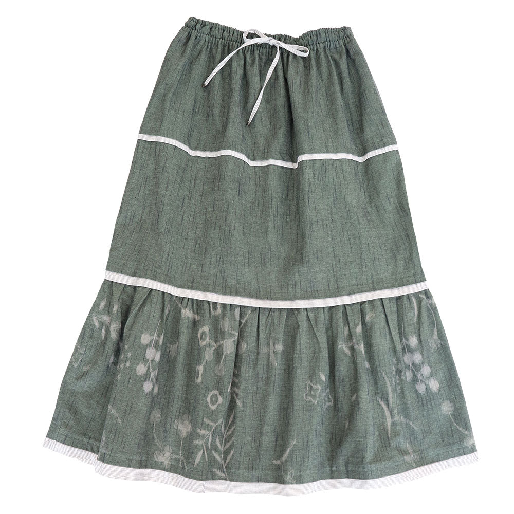 這是一條長層疊裙。純色 x 花卉圖案,以條紋為重點。