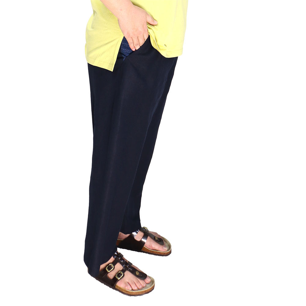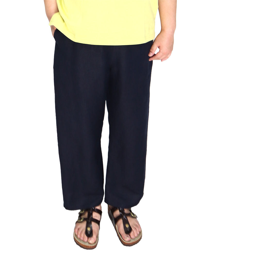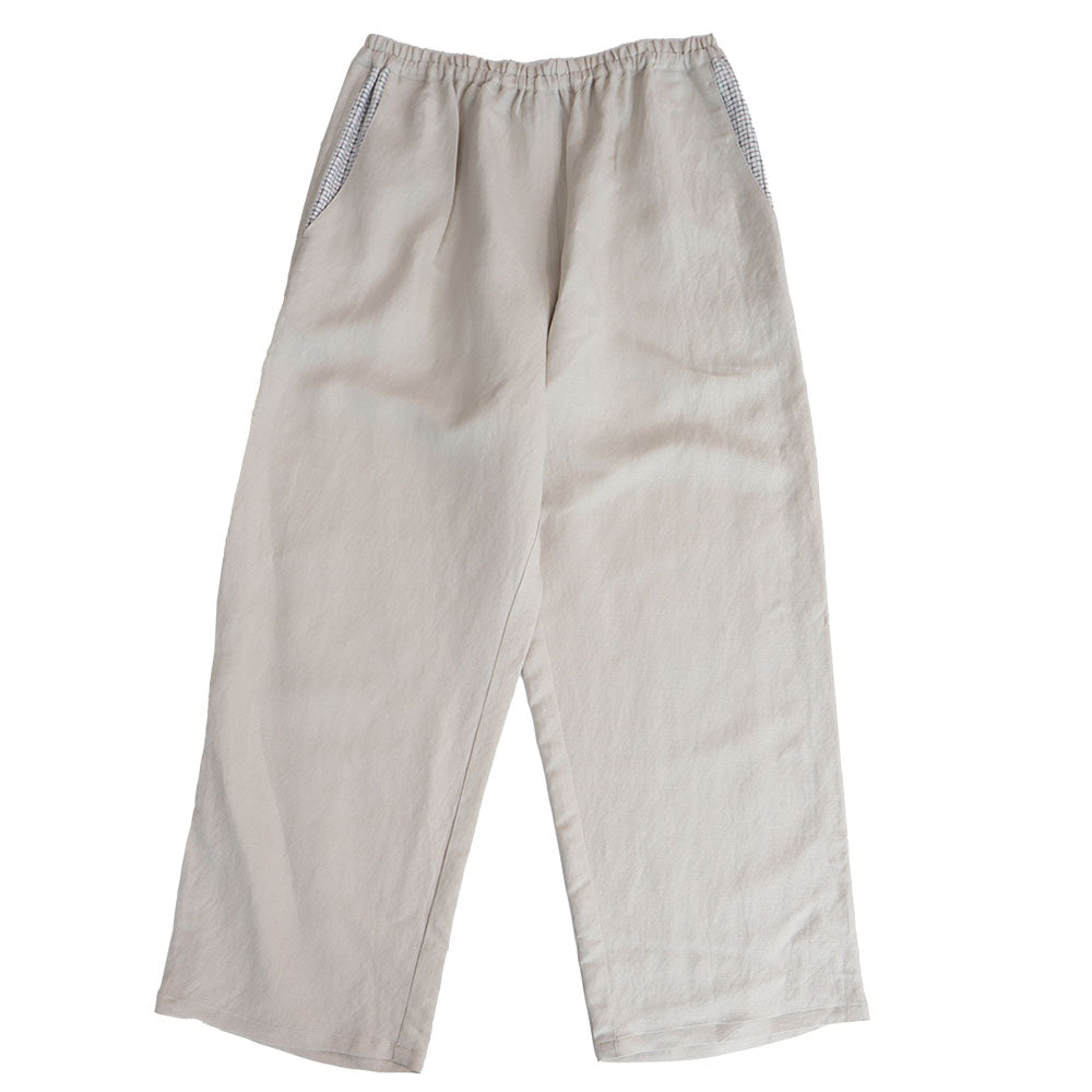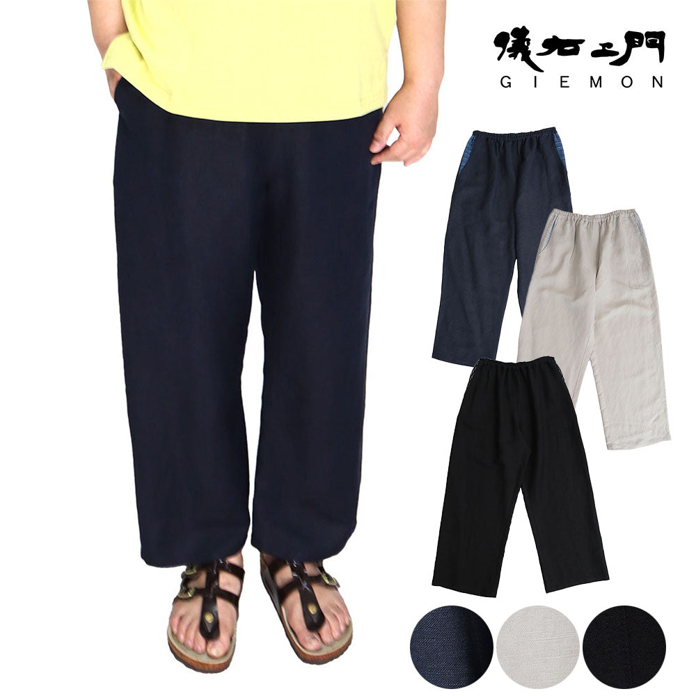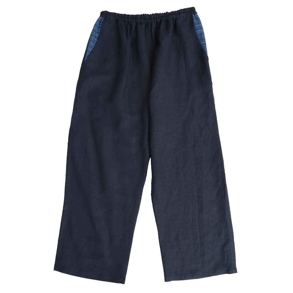 Giemon Giemon Giemon 亞麻人造絲長褲長褲 Ka722 久留米 Kasuri 配色方案有口袋 [2024ss]