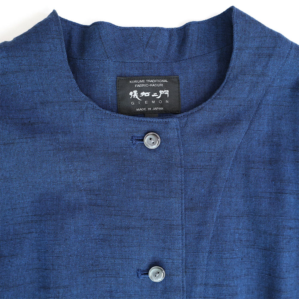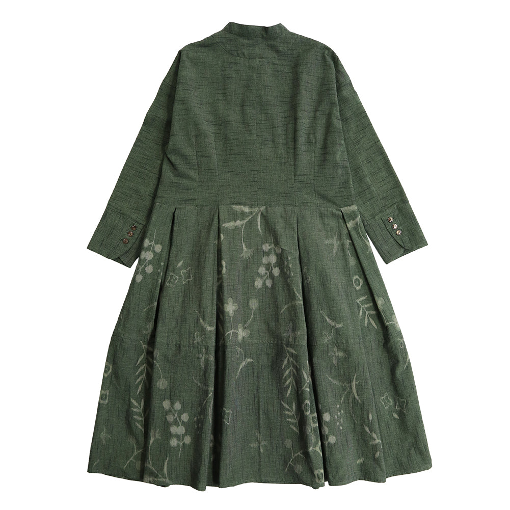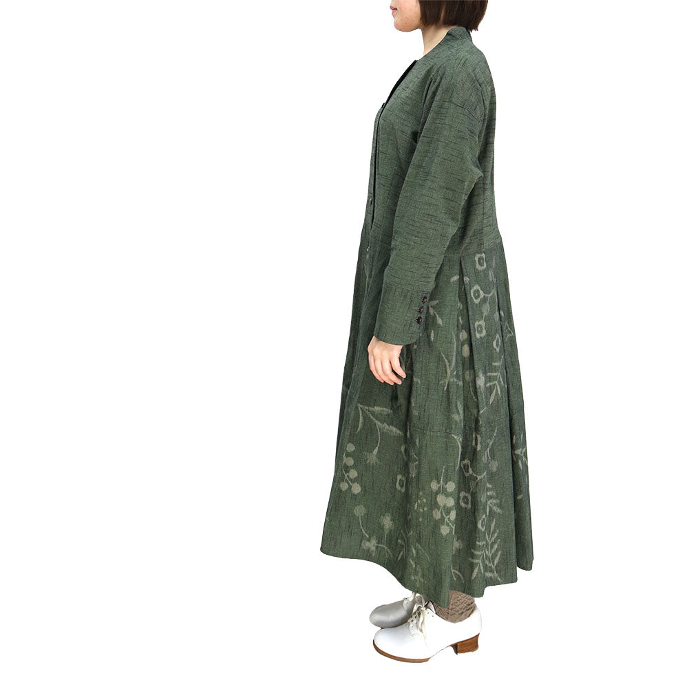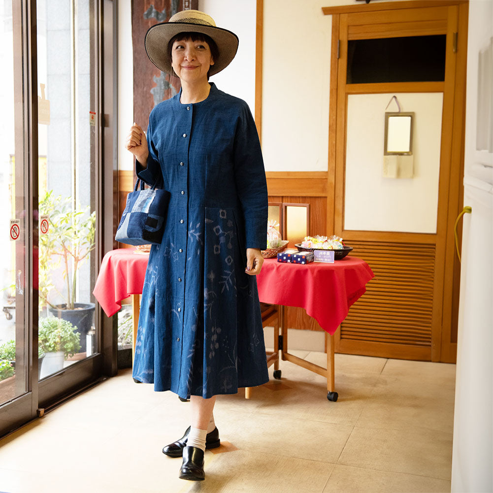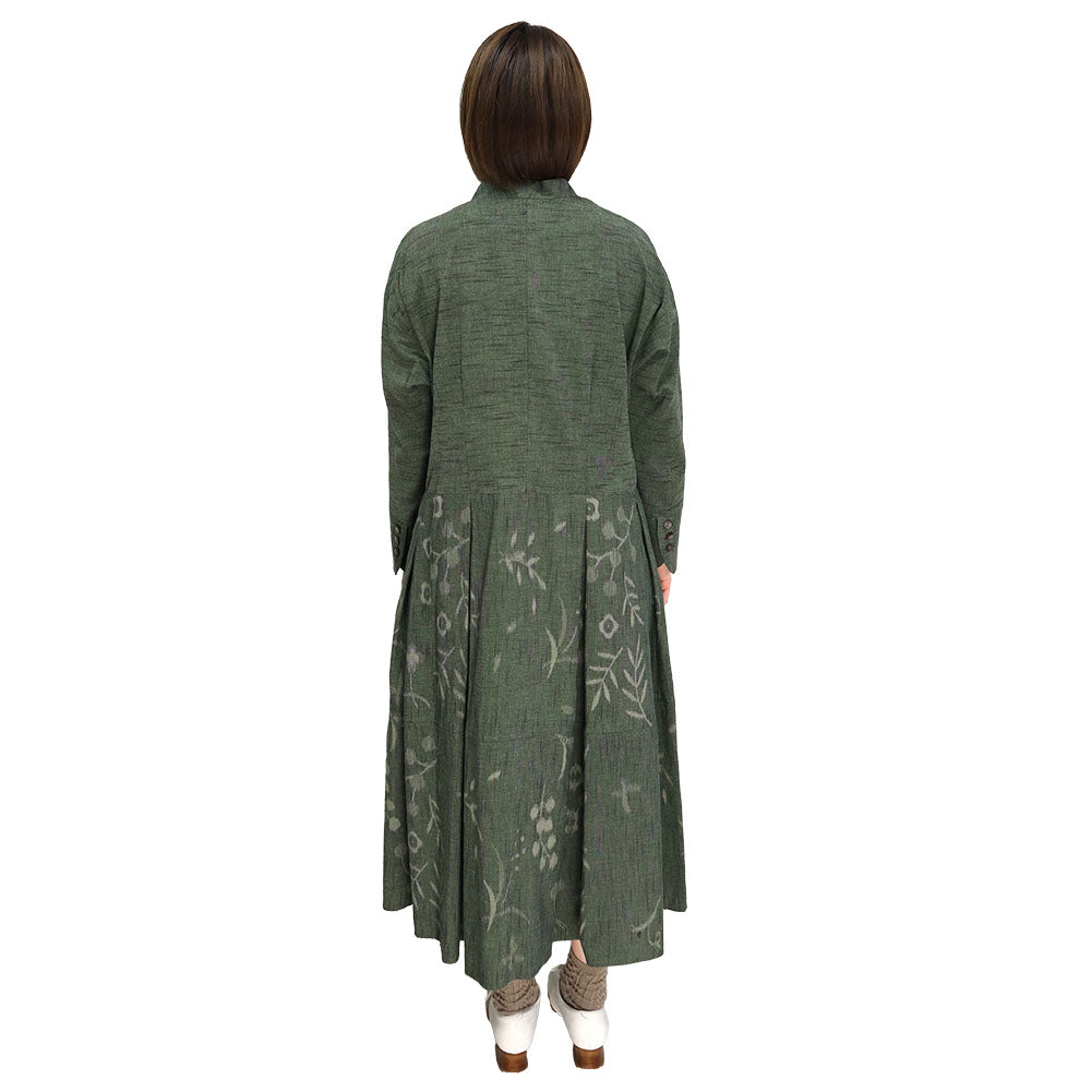 正面簡潔,領口向後上揚,看起來優雅。腰部有省道,下擺的喇叭形增添了女性化的外觀。我們還建議將袖口加長並打開正面,像長外套一樣穿著。