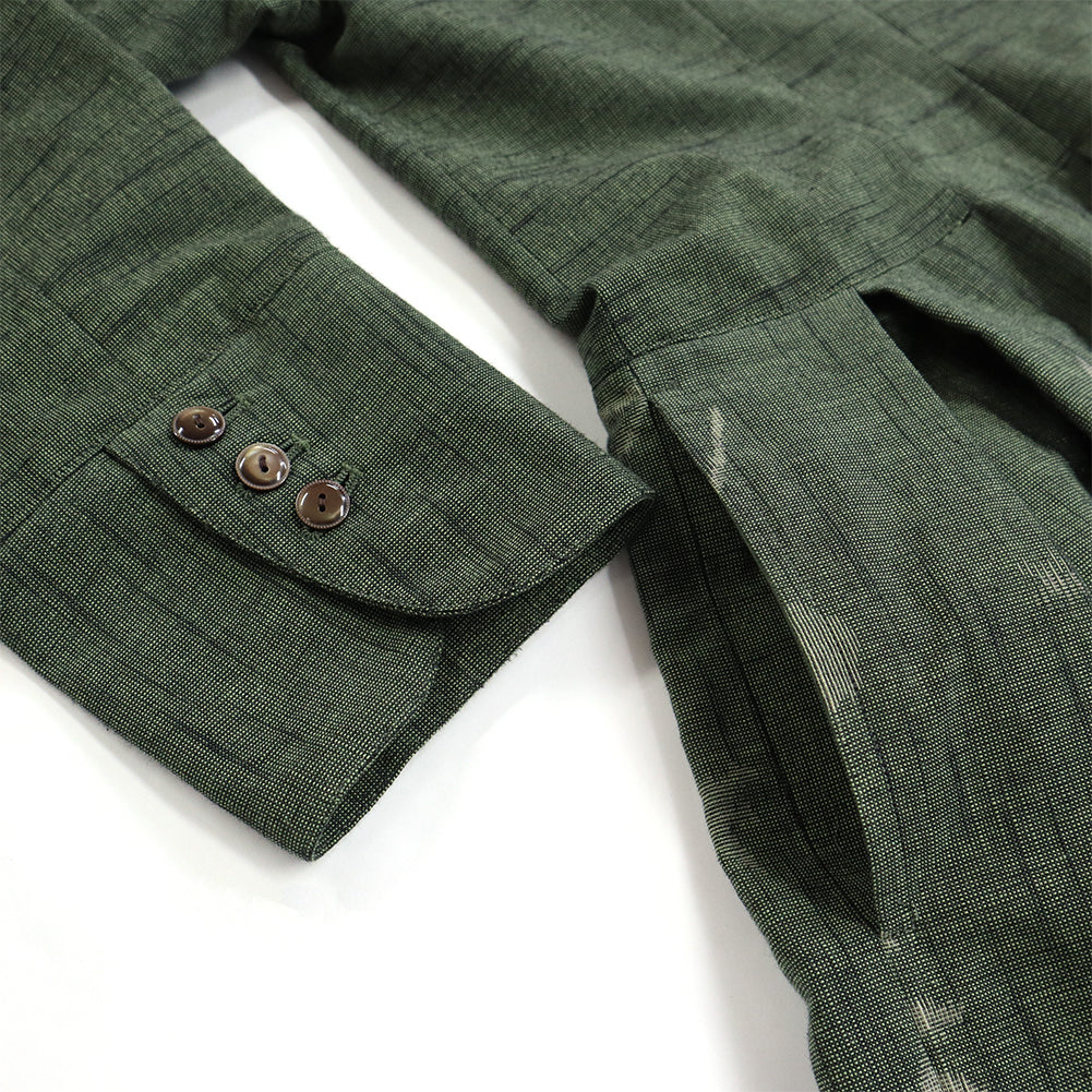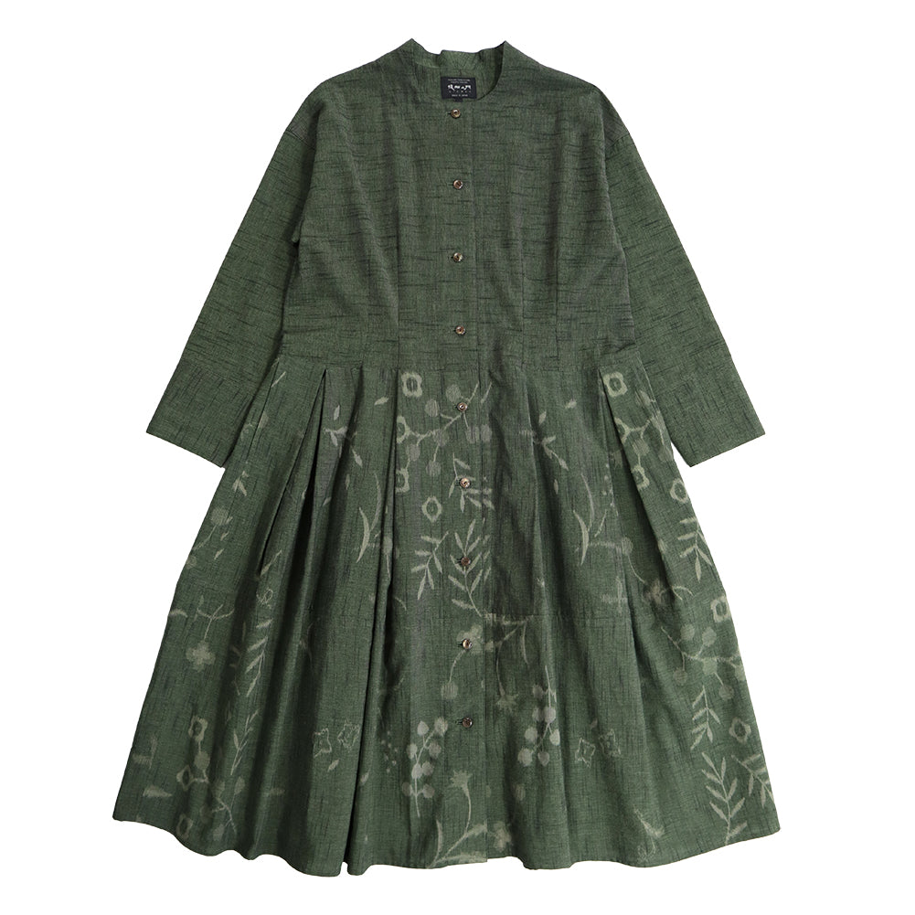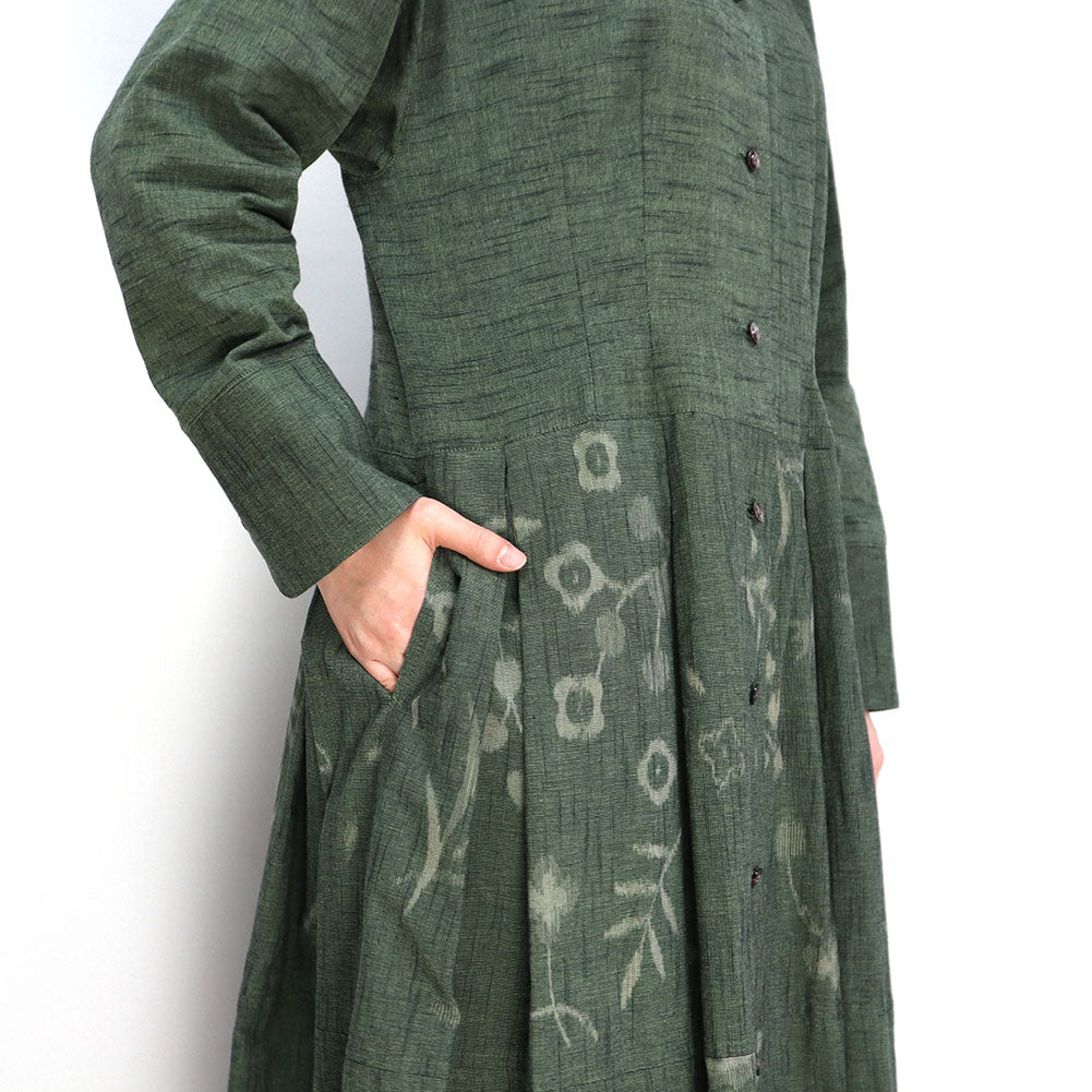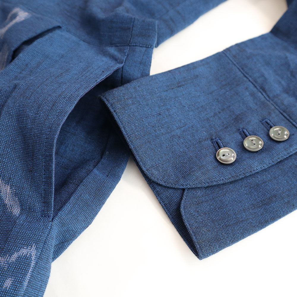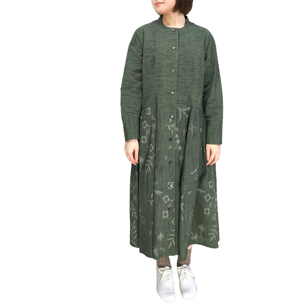 正面簡潔,領口向後上揚,看起來優雅。腰部有省道,下擺的喇叭形增添了女性化的外觀。我們還建議將袖口加長並打開正面,像長外套一樣穿著。