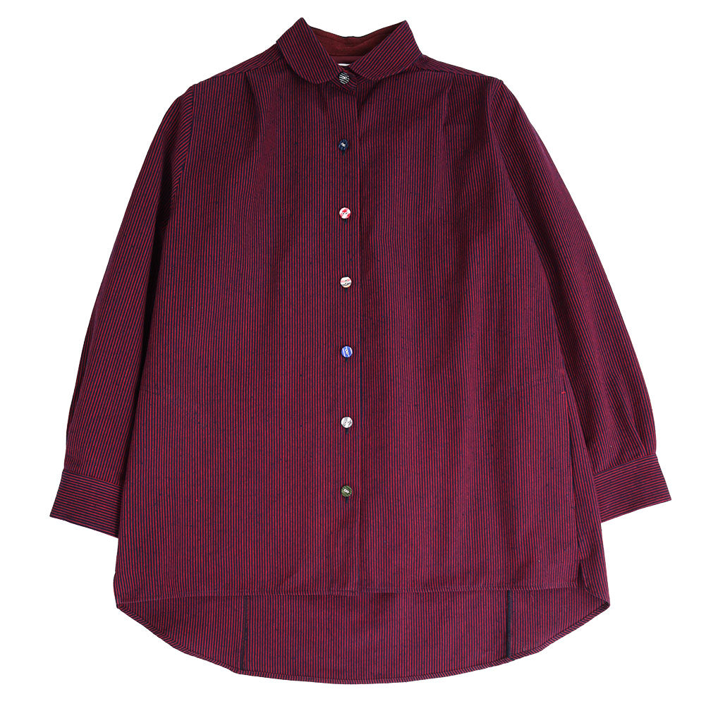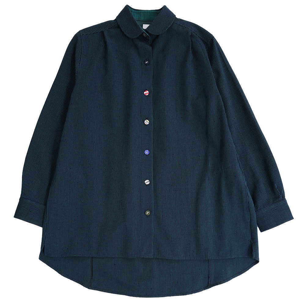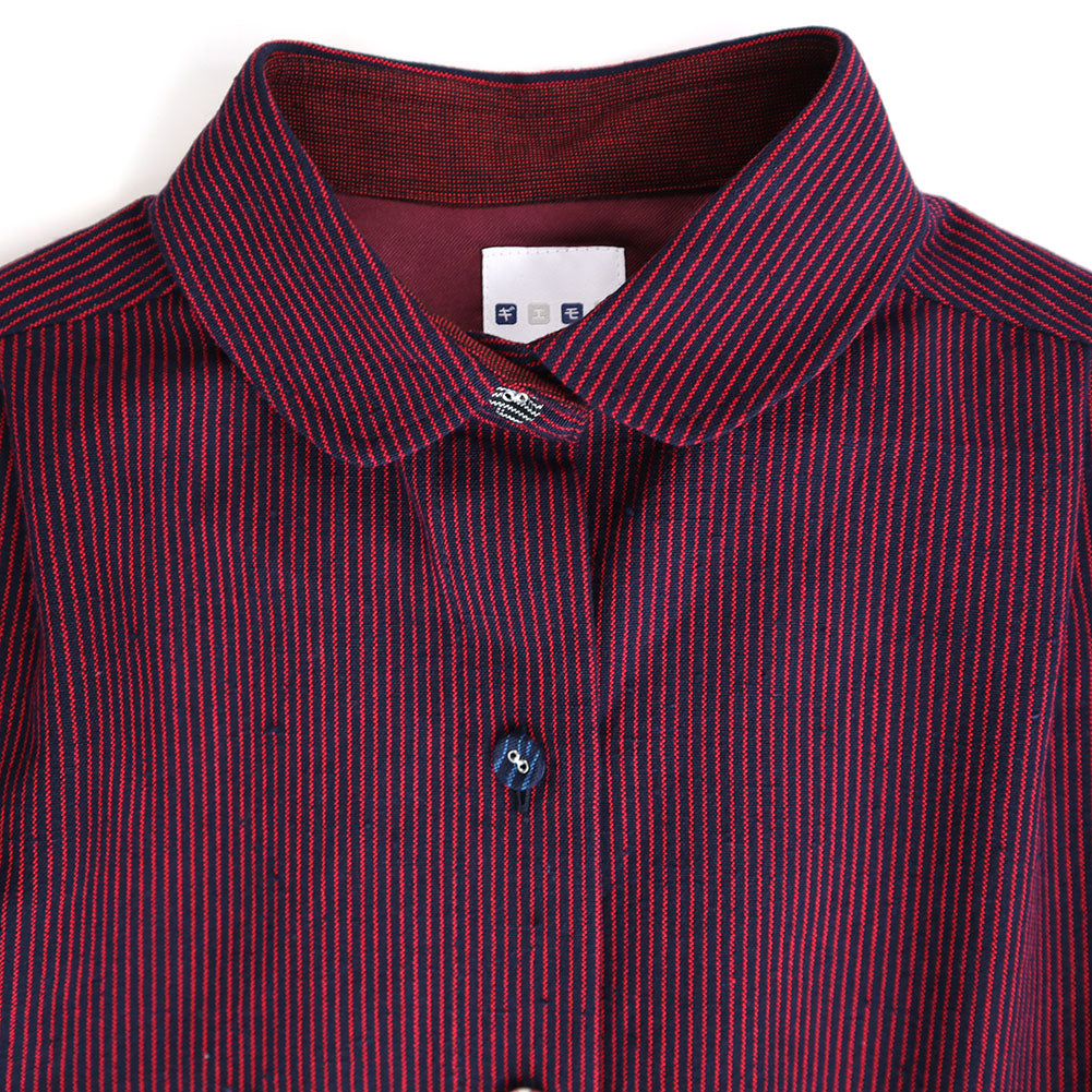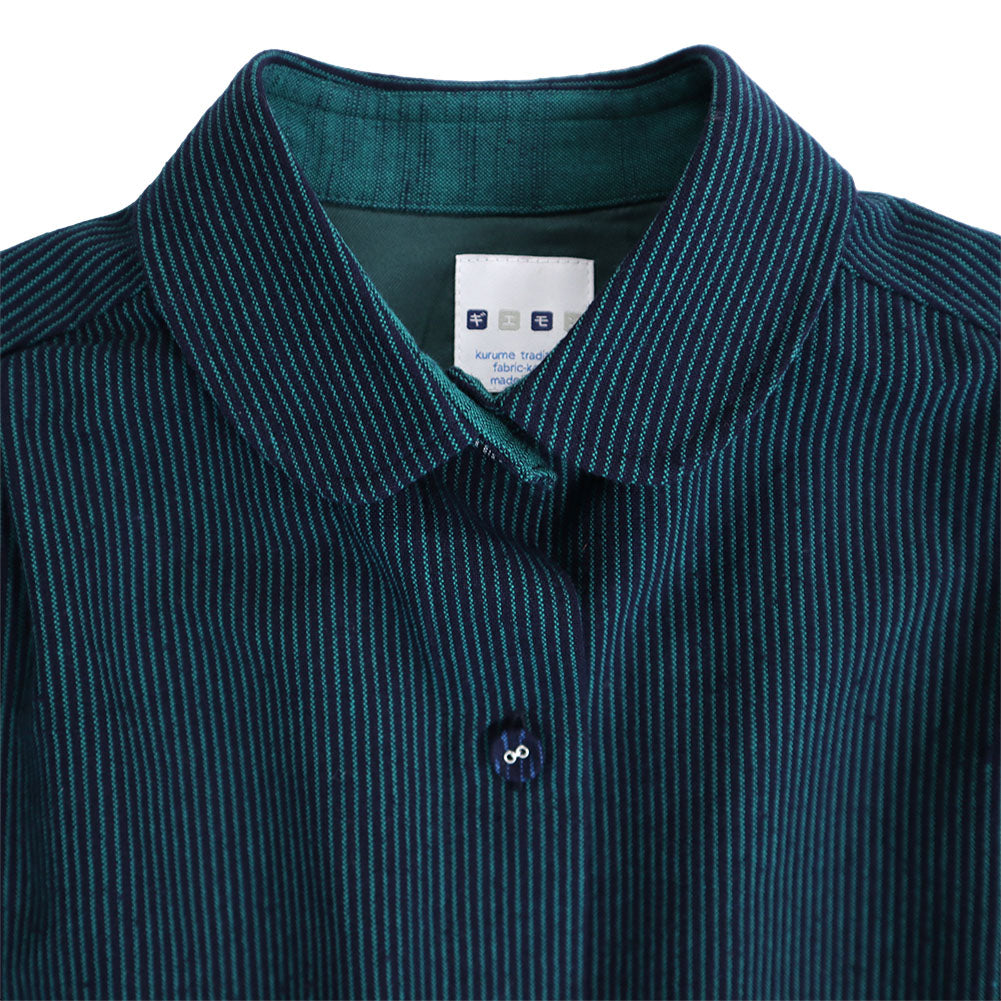 這款 Kurume Kasuri 女式襯衫在衣領和袖口背面有配色方案。