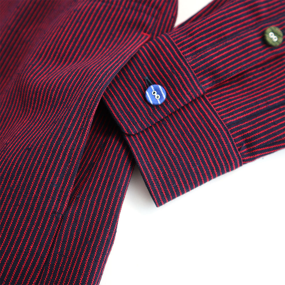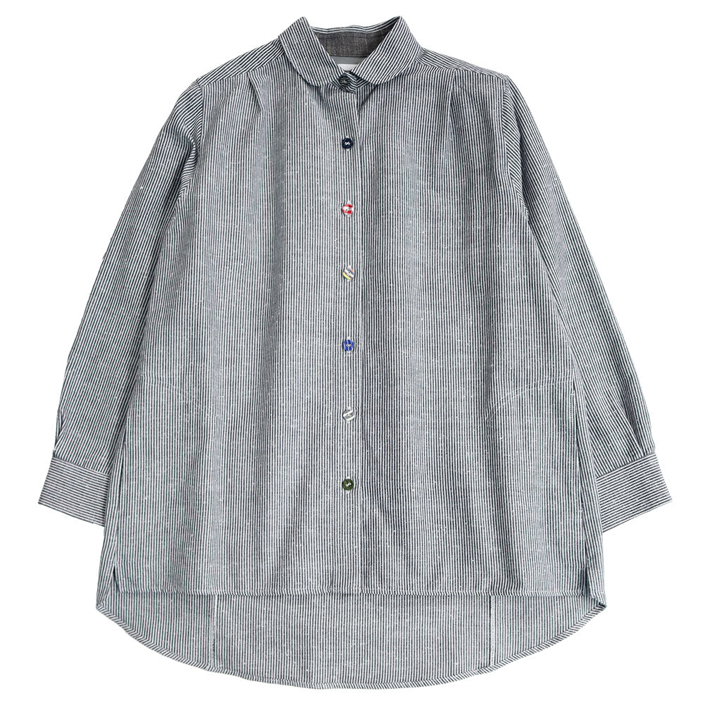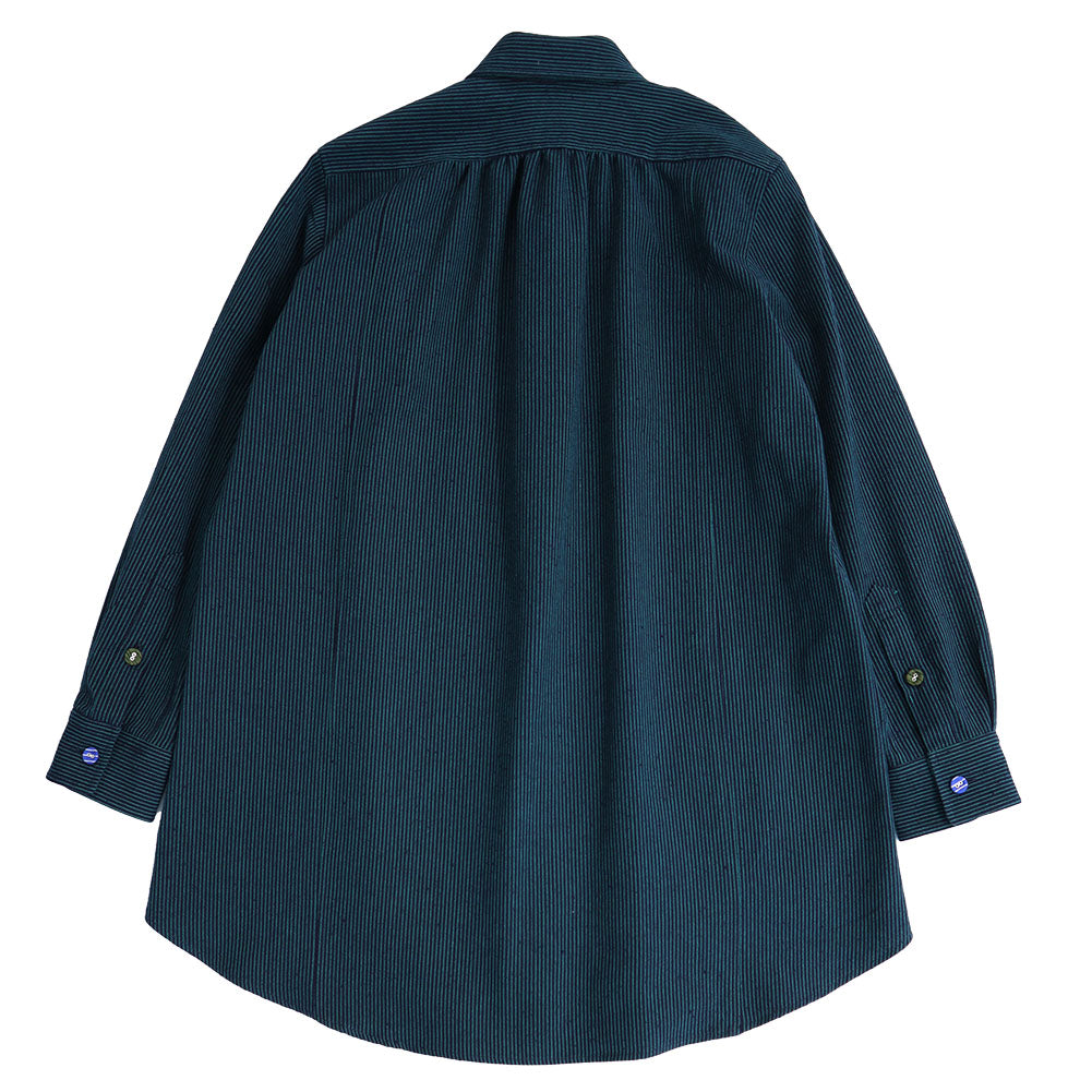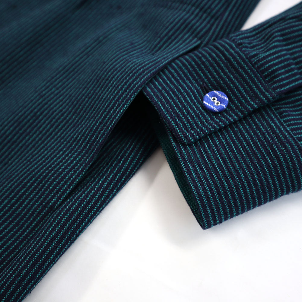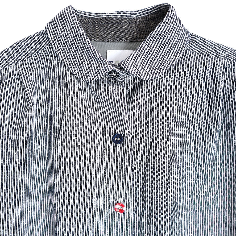 這款 Kurume Kasuri 女式襯衫在衣領和袖口背面有配色方案。