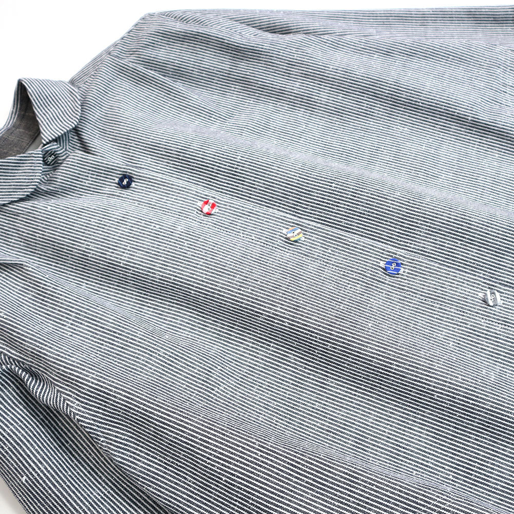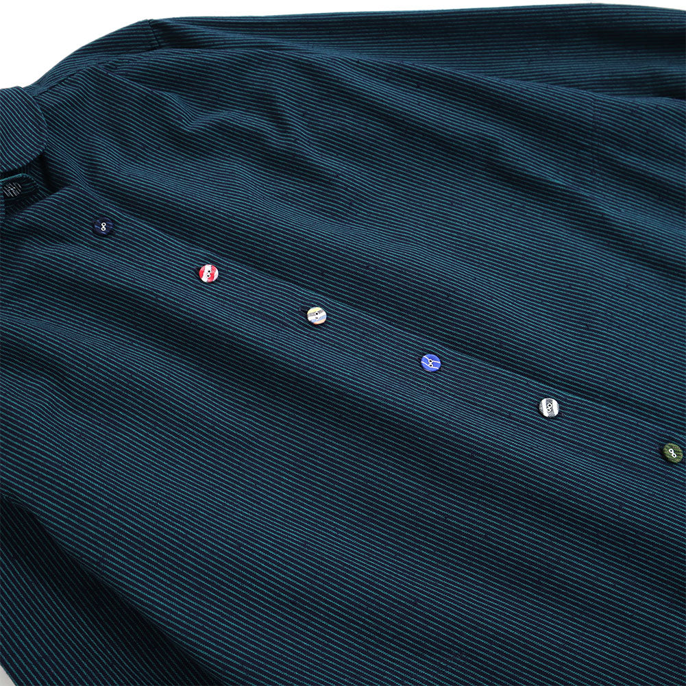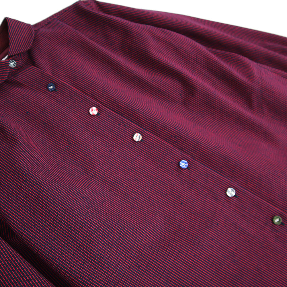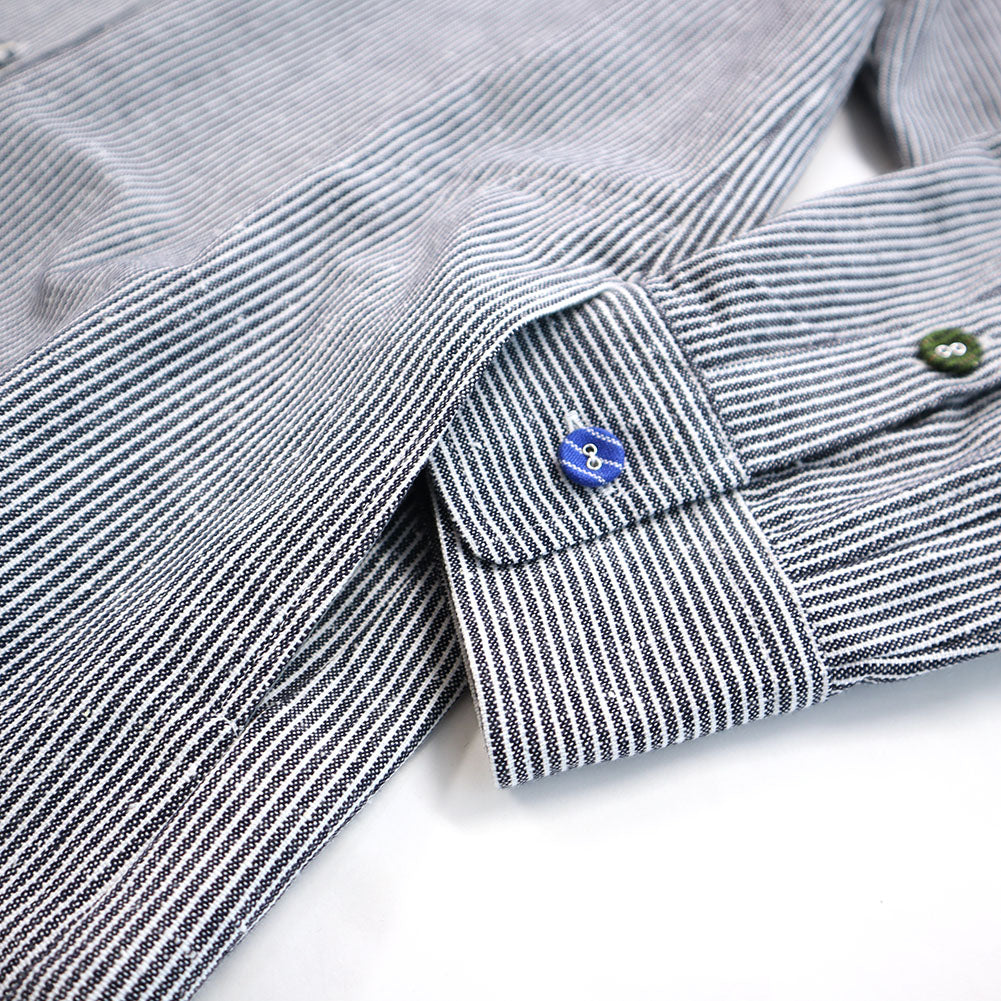 這款 Kurume Kasuri 女式襯衫在衣領和袖口背面有配色方案。