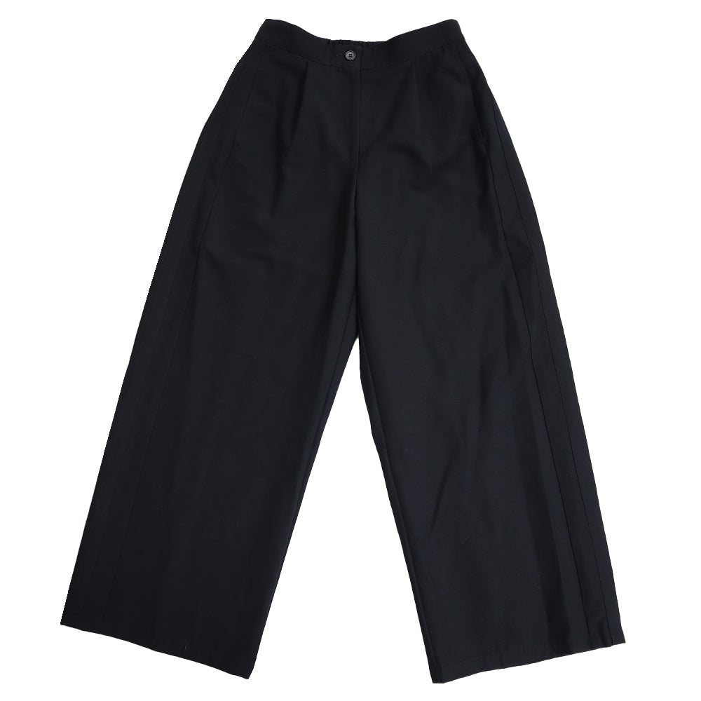 程よいワイド感のあるPTです。身頃部分に切り替えを入れ、股下のハギをスッキリさせました。前ファスナー明きで、後にゴムを入れた仕様にしています。