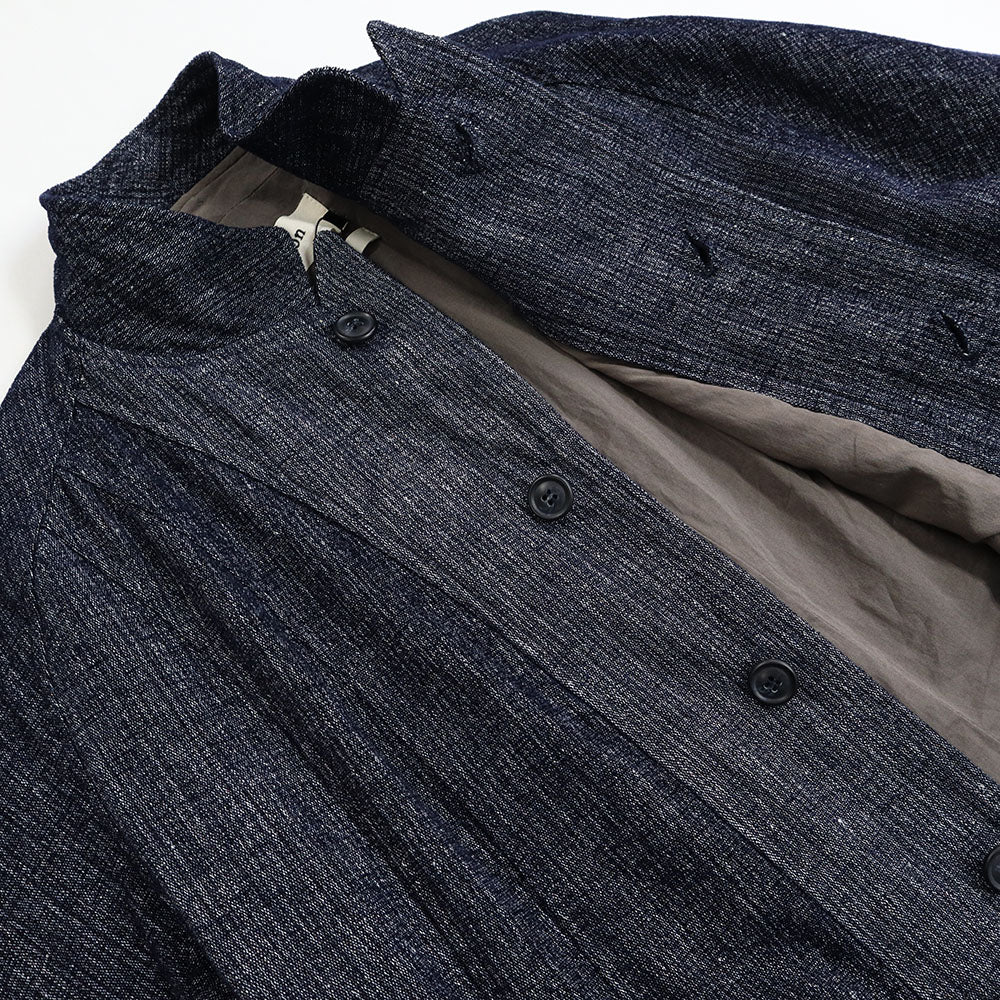 這款Kurume Kasuri Chester 外套採用腰形輪廓和弧形垂直過渡,打造簡潔外觀。它採用堅固的設計,內襯可防止風穿過並保持溫暖。