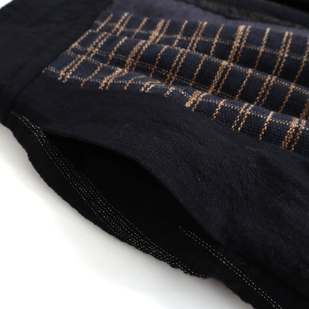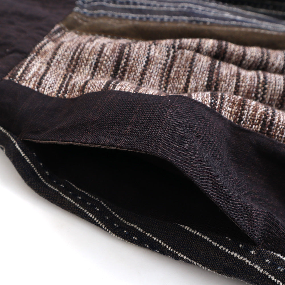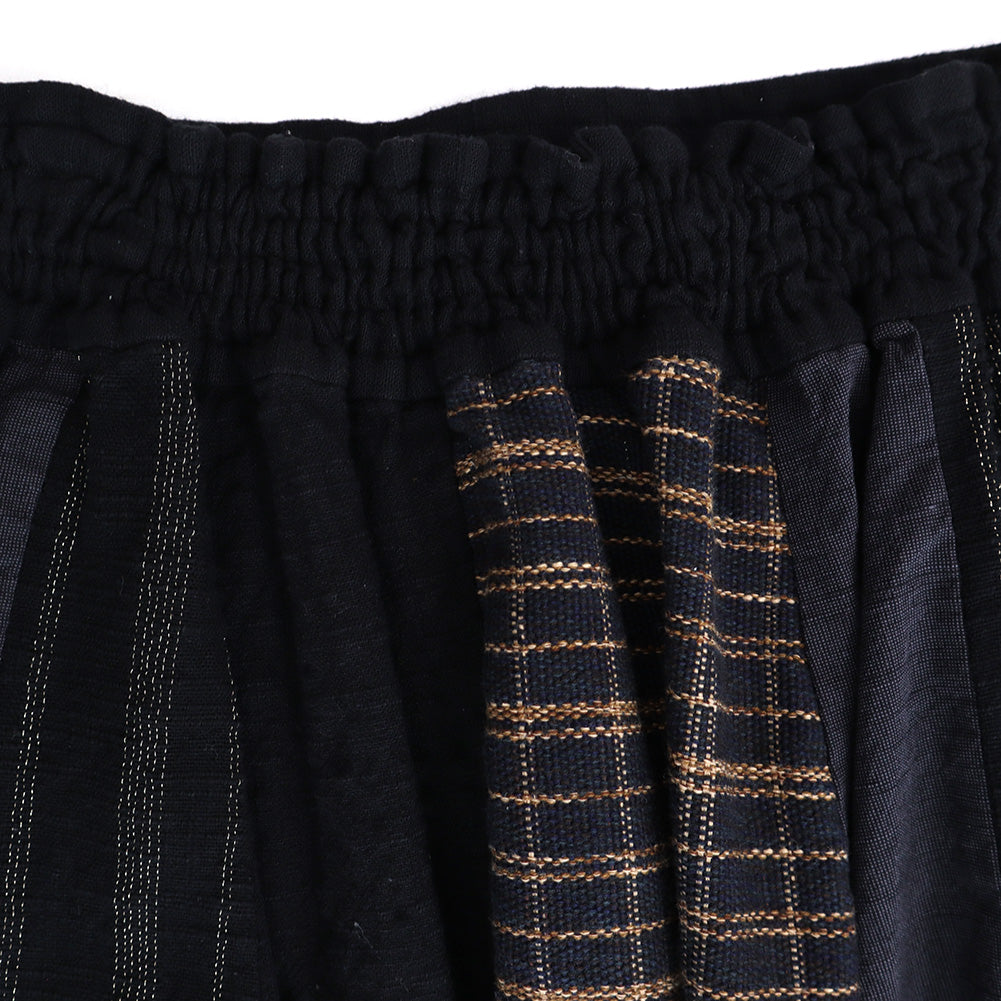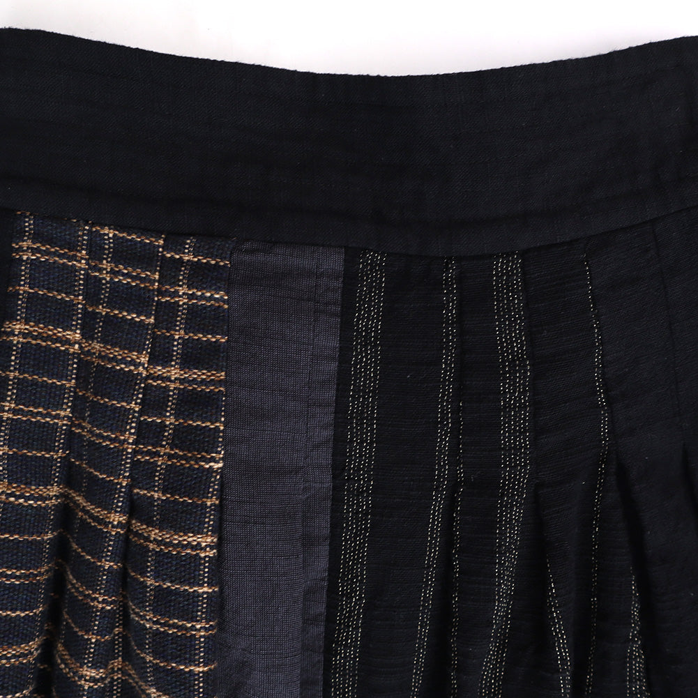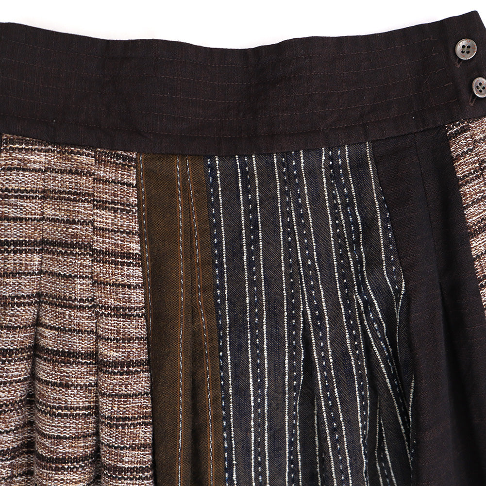由四種久留米笠布料製成的拼接裙子,以隨機寬度連接並塞在前面。