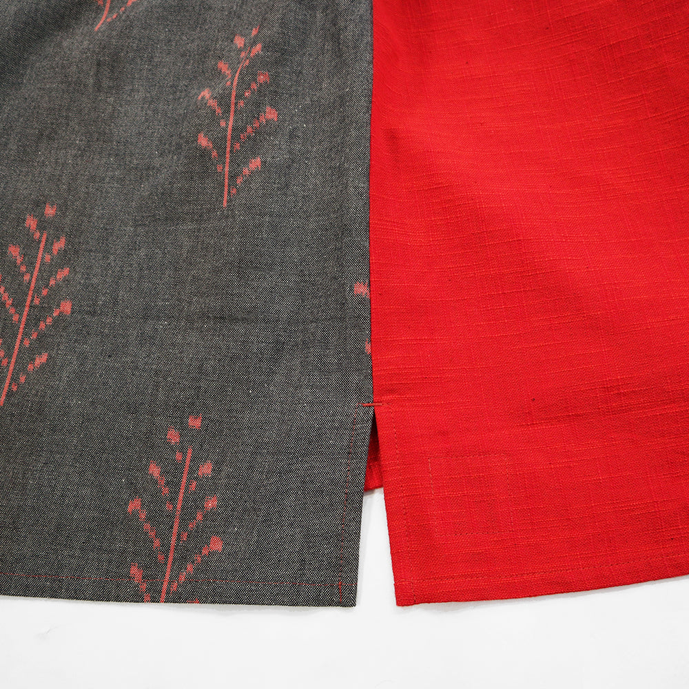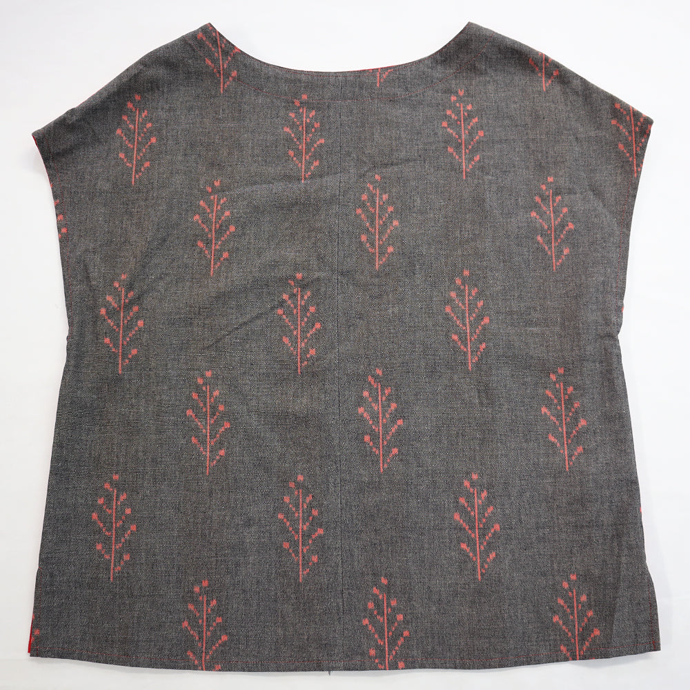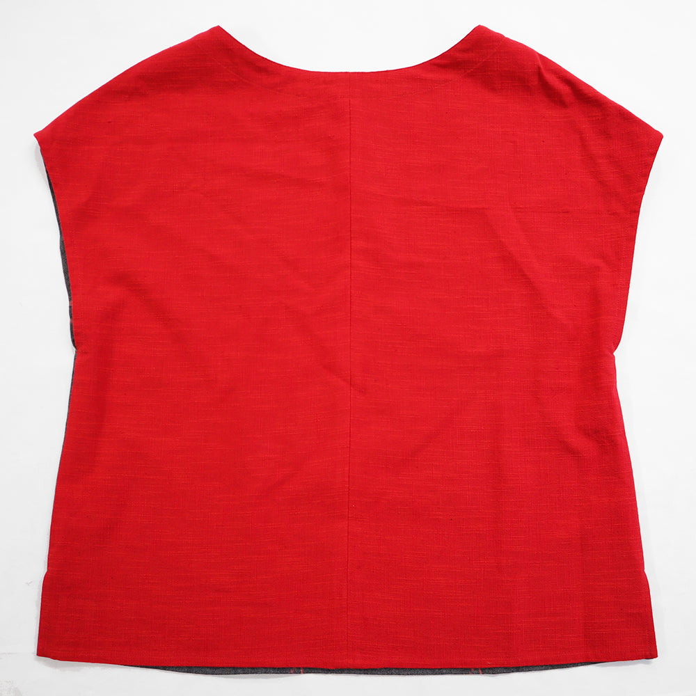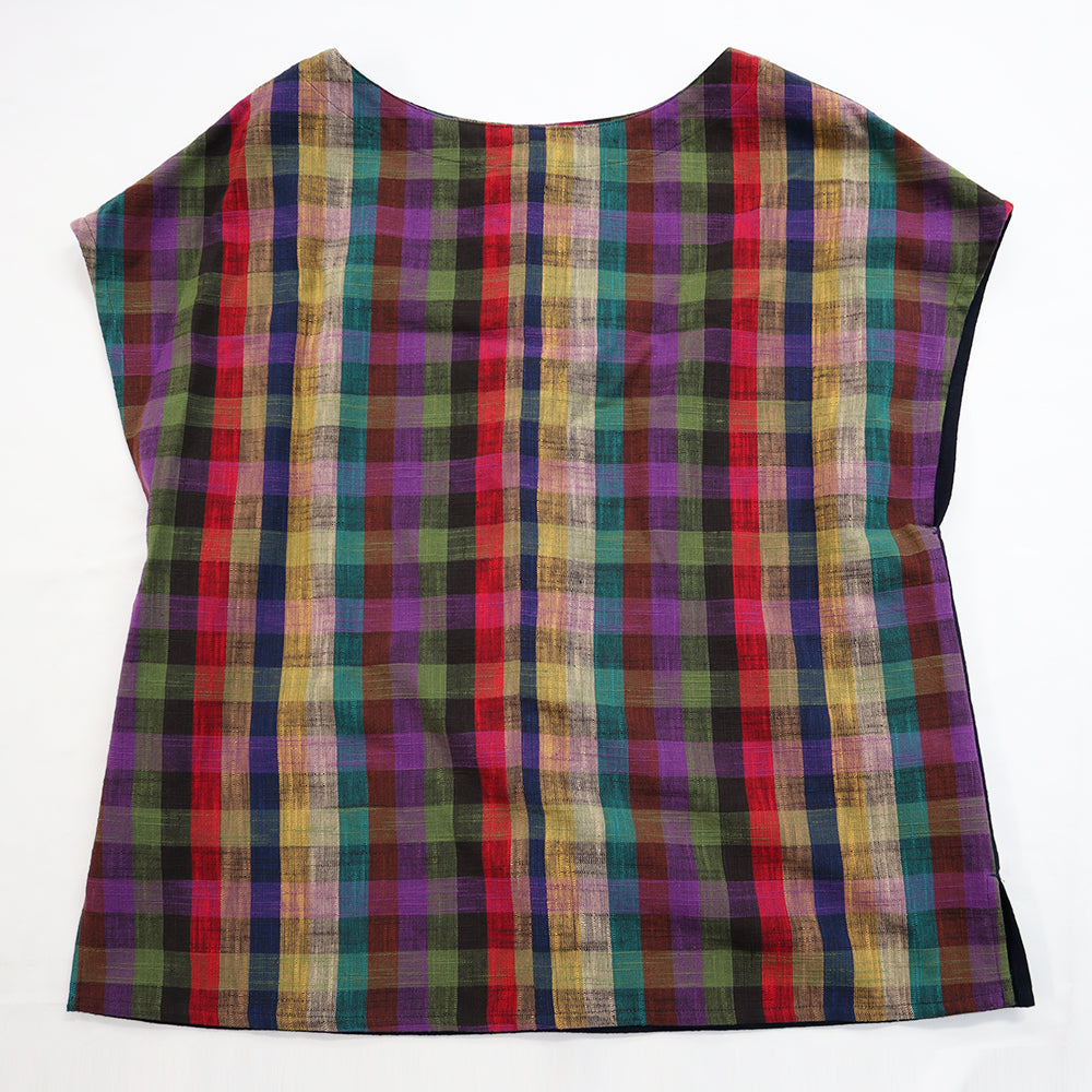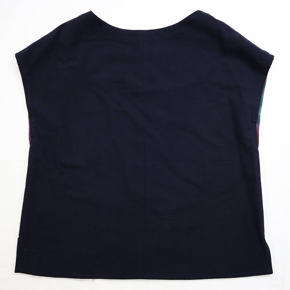 フレンチスリーブのブラウス。柄×無地のプルオーバーブラウスは、前後着られる2WAYタイプになっています。その日の気分で柄か無地を選べ、コーディネートを楽しんでいただけます。